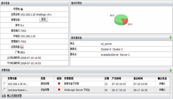 對應用服務器、WEB服務器、數據庫服務器等應用進行全面監控,管理這些應用的可用性和性能等關鍵指標,讓管理者實時了解應用服務對業務的服務情況,當有任意環節發生異常,在第一時間都會被管理者發現并解決,從而將應用故障對業務影響降到最低。