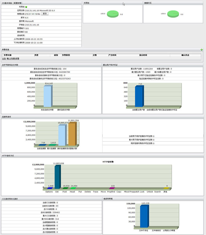 以下為企業IT系統管理服務器對應用監測的部分案例截圖